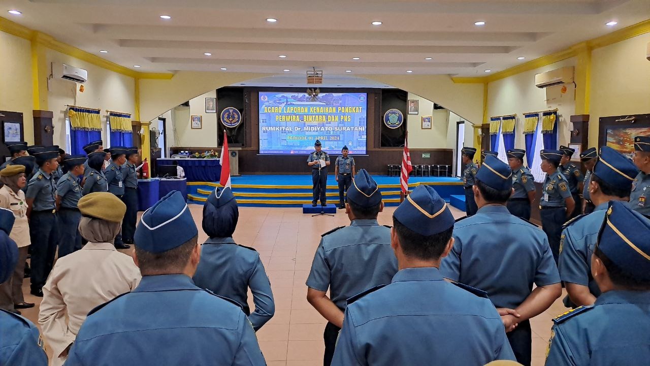 Karumkital Dr. Midiyato Suratani Kolonel Laut (K) dr. Mohamad Sulaiman Abidin, Sp.M., memimpin secara langsung pengukuhan kenaikan pangkat 14 personel tersebut dalam Acara Laporan Kenaikan Pangkat Perwira, Bintara dan PNS Rumkital Dr. Midiyato Suratani yang dilaksanakan di Gedung Serba Guna (GSG) Pulau Serasan Rumkital Dr. Midiyato Suratani, Jl. Ciptadi No. 01 Tanjungpinang, Provinsi Kepulauan Riau, pada Senin (1/4/2024).