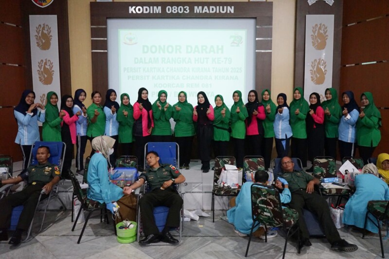 Madiun, – Seperti tahun-tahun sebelumnya, Persit Kartika Chandra Kirana (KCK) Koorcab Rem 081 PD V/Brawijaya kembali menggelar donor darah, bertempat di Makodim 0803/Madiun, Jl. Pahlawan No. 25 Kota Madiun, Rabu (5/2/2025). Aksi kemanusiaan itu dalam rangka memperingati Hari Jadi Persit KCK tahun ini yang jatuh pada 3 April mendatang.