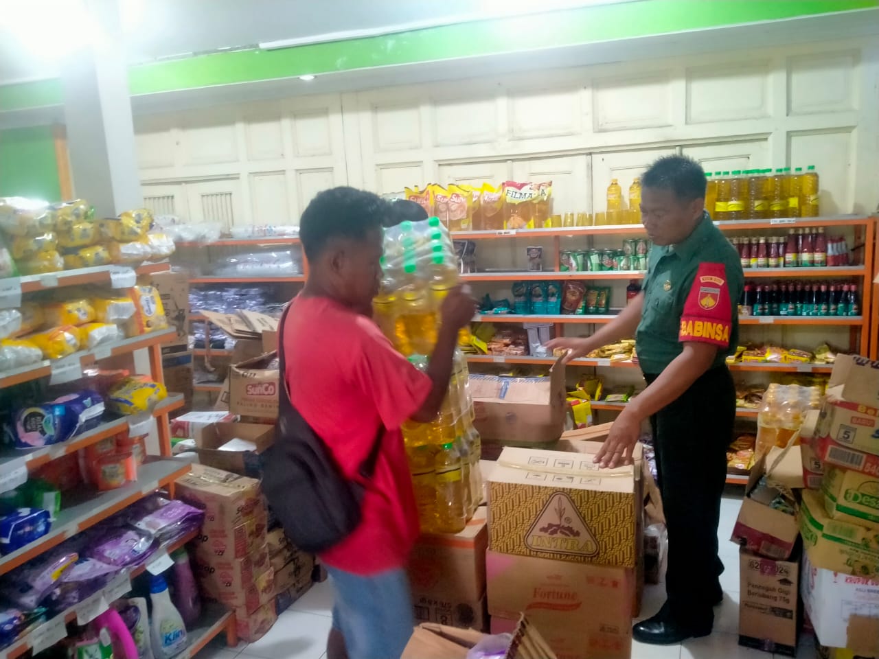 Sragen, – Serda Ibrahim Babinsa Kelurahan Kwangen Koramil 15/Gemolong berupaya memastikan ketersediaan sembilan bahan pokok (sembako) menjelang momen Ramadhan dan Idul Fitri atau Lebaran di Warung Sembako Agus, warga Dukuh Nglangak RT 04, Kelurahan Kwangen, Kabupaten Sragen, pada Senin (25/3/2024).