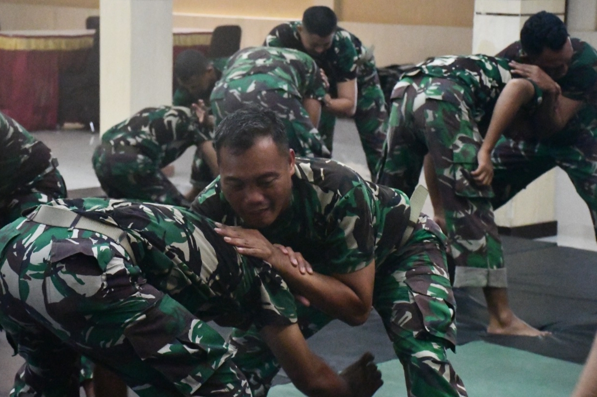 Penguasaan bela diri itu sifatnya menyeluruh, tak terkecuali bagi prajurit yang berdinas di satuan komando kewilayahan seperti Korem 081/DSJ.