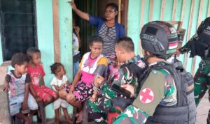 KEEROM – Hari ini, Jumat (24/2/2023) ada yang tak biasa bagi anak-anak di Kampung Workwana, Distrik Arso, Kabupaten Keerom, Papua. Anak-anak nampak ceria bersama personil Satgas Pamtas RI-PNG Yonif 132/BS.