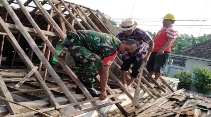 Babinsa Bendogrit Bantu Perbaikan Atap Rumah Warga