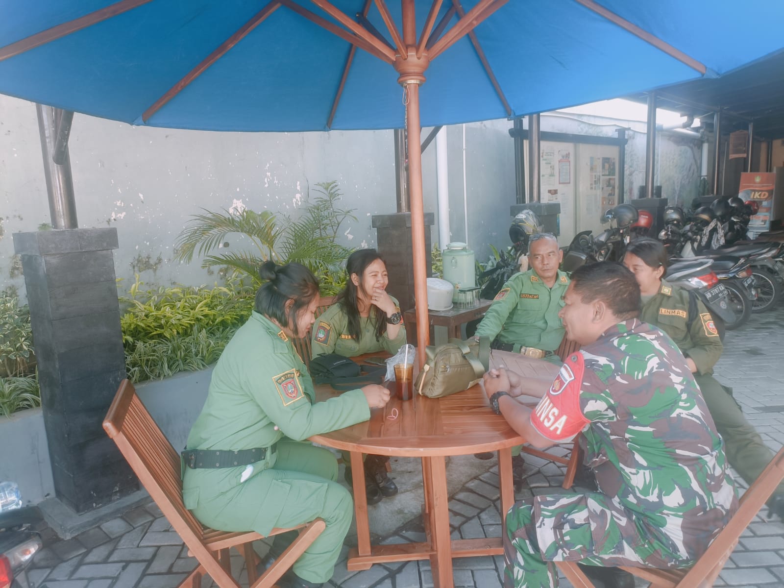 Tak lupa babinsa memberikan pelatihan pertahanan diri sendiri dan PBB kepada anggota linmas kelurahan untuk melatih disiplin, tegasnya