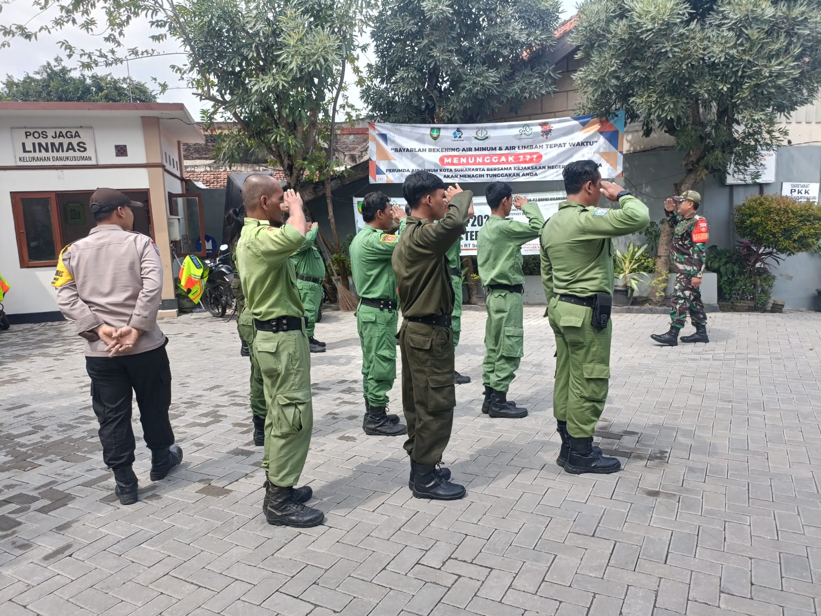 SURAKARTA – Babinsa Kelurahan Danukusuman Sertu Rochani dan Serda Tito Koramil 03/Serengan Kodim 0735/Surakarta melaksanakan kegiatan pembinaan dengan cara mengambil Apel Pagi Anggota Linmas Kelurahan dan sekaligus melatihkan sikap Disiplin dengan cara latih Peraturan Baris Berbaris (PBB), hari ini, Kamis (22/6/2023).