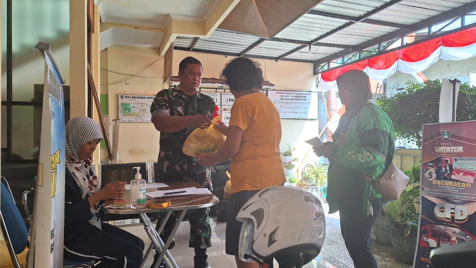 SURAKARTA – Babinsa Kelurahan Kemlayan Koramil 03 Serangan Kodim 0735 Surakarta Serda Catur Handoko monitoring dan membantu pendistribusian sembako dari Klenteng Poo An Tiong Jayengan kepada warga kurang mampu warga Kemlayan bertempat di Kelurahan Kemlayan Jl. Sukareno RT 01 RW 05, Kelurahan Kemlayan, Kecamatan Serengan, Kota Surakarta.