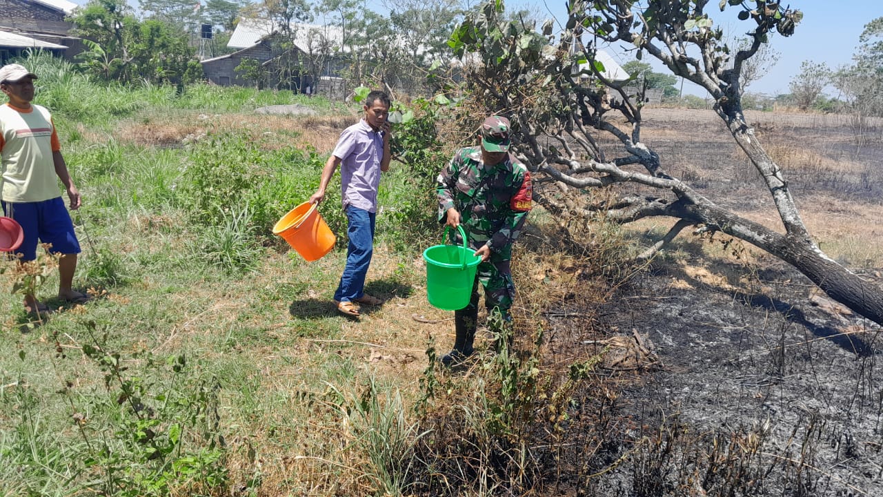 BOYOLALI – Babinsa Koramil 06/Cepogo Kodim 0724/Boyolali Sertu Mansur membantu proses pemadaman kebakaran lahan di Desa Jelok, Kecamatan Cepogo, Kabupaten Boyolali.