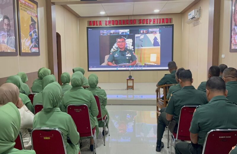 Blitar, – Di tengah kesibukan menjaga pertahanan dan keamanan negara, para prajurit TNI dan keluarganya di Kodim 0808/Blitar tak melupakan pentingnya membina ketahanan rohani dan keharmonisan rumah tangga. Bertempat di Aula Makodim 0808/Blitar, Kamis (19/6/2025), sekitar 75 peserta yang terdiri dari anggota TNI, PNS, dan Persit Kartika Chandra Kirana mengikuti kegiatan pembinaan rohani Islam secara daring melalui Zoom Meeting.