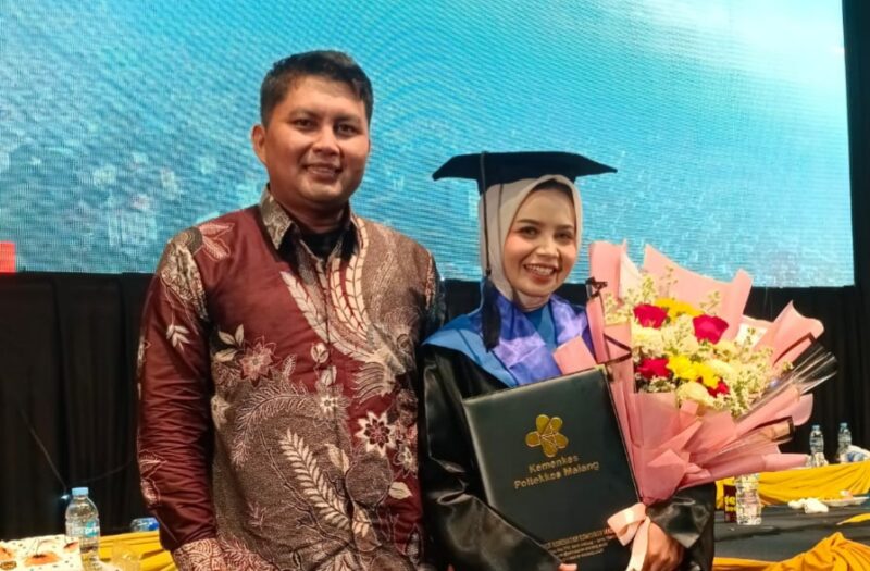 Malang, – Di tengah lautan toga hitam yang memenuhi Gedung Cakrawala Universitas Negeri Malang, Kamis (2/10/2025), kisah haru seorang wisudawati asal Jombang mencuri perhatian. Baru sebulan menikah, ia langsung menghadiahkan gelar cumlaude untuk sang suami tercinta yang merupakan prajurit TNI.