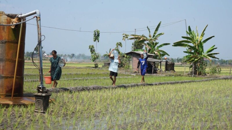 “Air (sumur) di rumah-rumah warga itu banyak yang mengandung kapur, akhirnya terpaksa mengambil air di sawah. Warga di sini sering menyebutnya Sumur Dalam, karena kedalamannya sekitar 350-400 meter,” kata Warno ditemui di rumahnya beberapa waktu lalu.