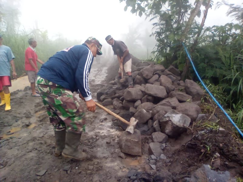 Boyolali, Jawa Tengah – Di bawah terik matahari lereng Merapi-Merbabu, sejumlah prajurit TNI tetap mengayunkan cangkul dan meratakan material jalan di Dukuh Sidorejo, Desa Mliwis, Kecamatan Cepogo, Kabupaten Boyolali, Kamis (19/2/2026). Bulan Ramadhan tak menyurutkan ritme kerja Satuan Tugas TNI Manunggal Membangun Desa (TMMD) Sengkuyung Tahap I Kodim 0724/Boyolali dalam menuntaskan pembangunan infrastruktur desa.