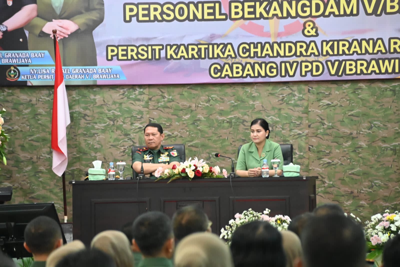 Dengan didampingi Ketua Persit PD V/Brawijay, Ny. Lisa Rafael Granada Baay, kedatangan Pangdam bersama Ketua Persit dengan didampingi pejabat teras Makodam, langsung disambut oleh seluruh prajurit Bekangdam.