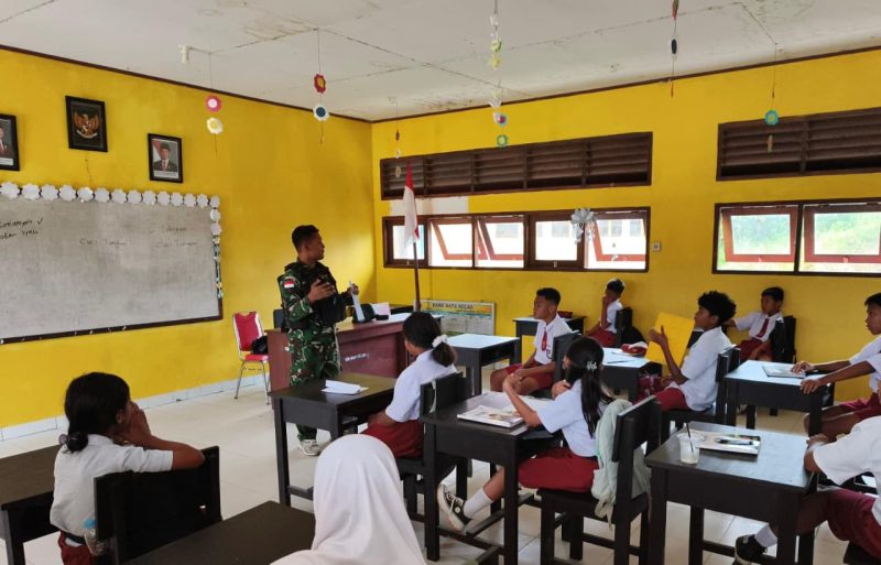Prajurit Satgas Yonif 410/Alugoro hadir dengan peran yang berbeda. Mereka tidak sedang menjalankan operasi militer, melainkan mengajarkan kedisiplinan, kebersamaan, dan semangat belajar kepada para siswa di wilayah tersebut.