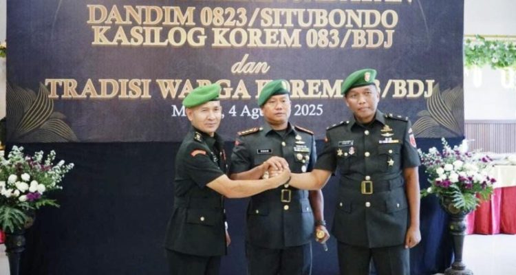 Danrem 083/Baladhika Jaya Pimpin Sertijab Dandim Situbondo dan Kasilog Korem, Tegaskan Profesionalisme dan Soliditas Prajurit Korem|August 5, 2025by Brawijaya Malang, – Suasana khidmat menyelimuti Aula Untung Suropati, Makorem 083/Baladhika Jaya, Kota