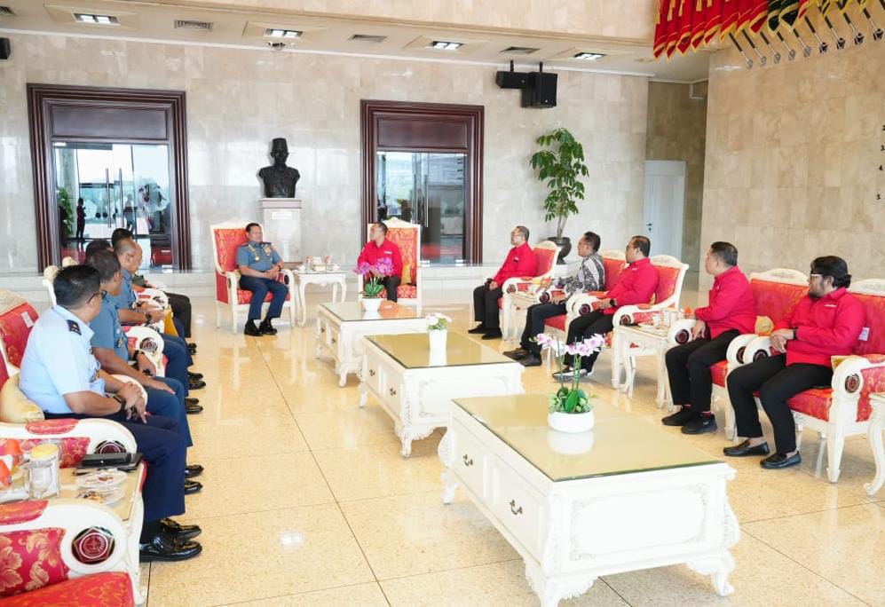 JAKARTA – Panglima TNI Laksamana TNI Yudo Margono, S.E., M.M. didampingi Asintel Panglima TNI Mayjen TNI Sonny Aprianto, S.E., M.M., Aspers Panglima TNI Marsda TNI Arif Widianto, S.A.B., M.Tr.(Han), Aster Panglima TNI Mayjen TNI Mochamad Syafei Kasni, S.H., Kapuspen TNI Laksda TNI Julius Widjojono, CHRMP dan Waasops Panglima TNI Marsma TNI Bonang Bayuaji G., S.E., M.M. menerima kunjungan CEO tvOne dan jajaran redaksi, di Mabes TNI, Cilangkap, Jakarta Timur, Kamis (21/9/2023).