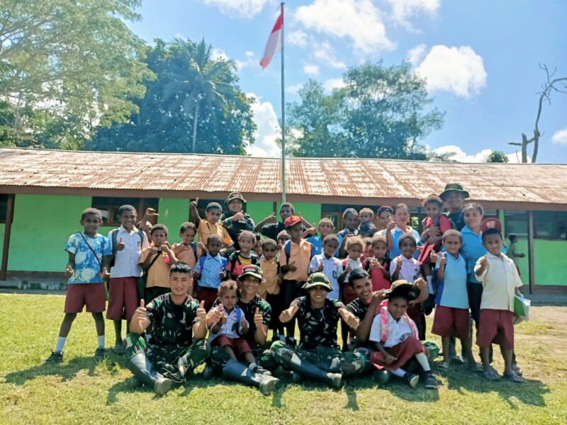 Danpos Waris Letda Inf Hasan Basri Sipahutar menegaskan bahwa sebagai TNI yang lahir dari rakyat dan untuk rakyat, TNI manunggal dengan rakyat, maka dari itu selain melaksanakan pengamanan di wilayah perbatasan RI-PNG juga melaksanakan teritorial kepada masyarakat dan anak-anak di Kampung Bandan, Distrik Waris.