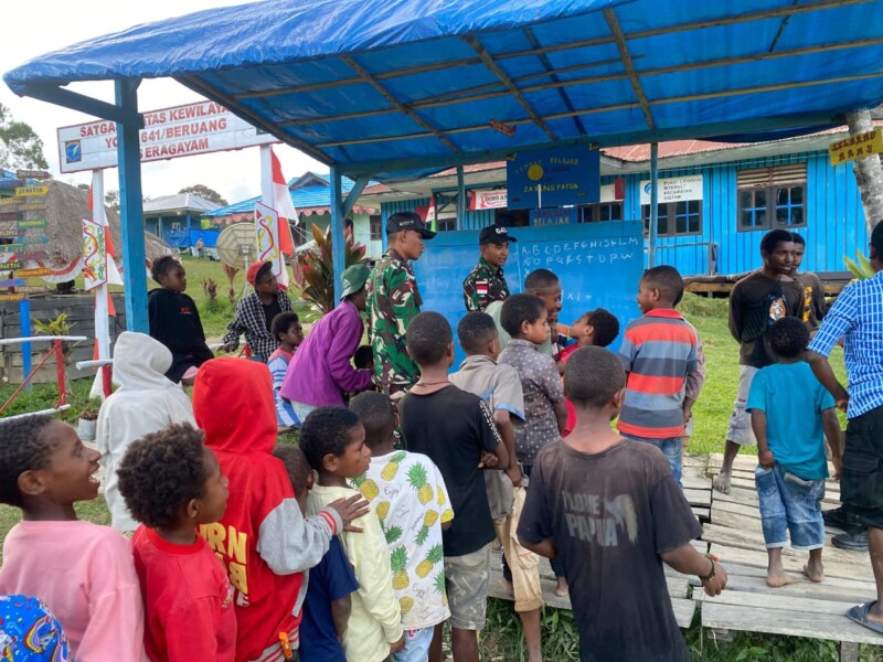 Membramo Tengah, – Pos Eragayam berperan sebagai bagian dari Satgas RI-PNG Kewilayahan Yonif 641/Beruang untuk meningkatkan kualitas pendidikan anak bangsa melalui pelaksanaan Sanggar Belajar di Distrik Eragayam, Kabupaten Membramo Tengah, Provinsi Papua Pergunungan. Seperti yang mereka lakukan hari ini, Kamis (31/10/2024).