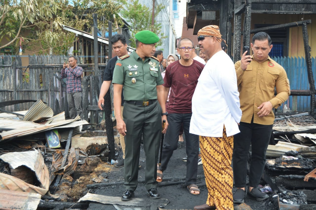 Usai melihat langsung lokasi kebakaran, Dandim dan Bupati berkesempatan untuk menyambangi posko korban kebakaran dan menyerahkan bantuan sembako dan perlengkapan lainnya kepada para korban kebakaran yang ada di Kelurahan Melayu.