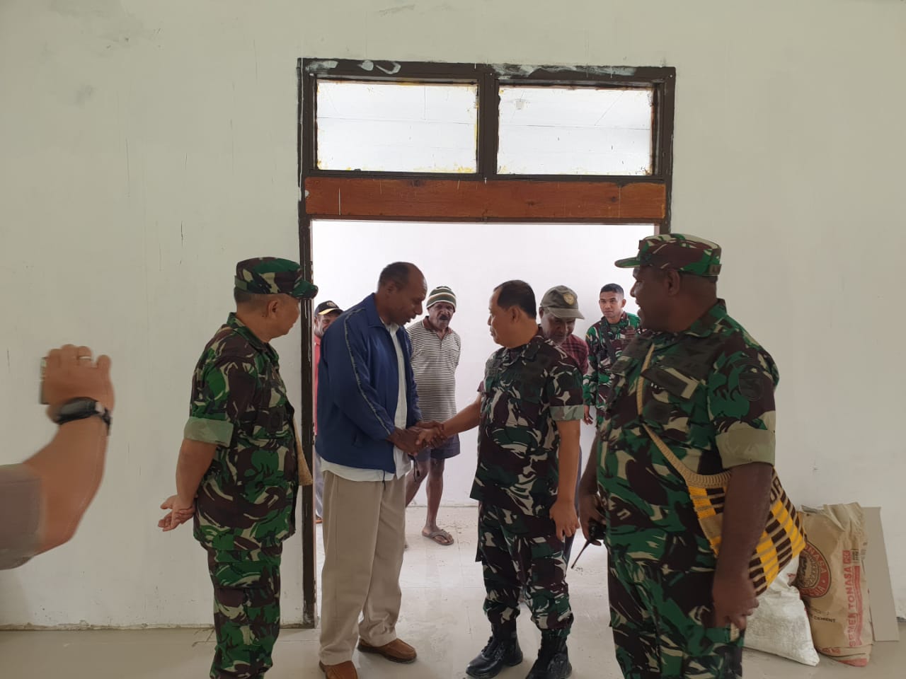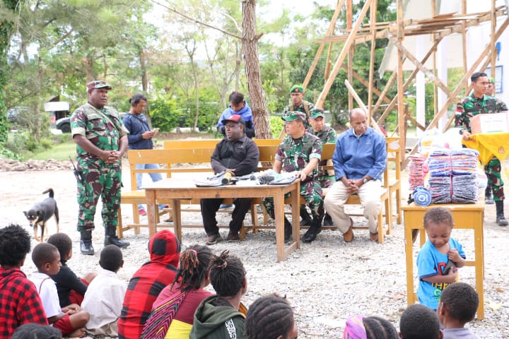 WAMENA – Dandim 1702/Jayawijaya Letkol Cpn Athenius Murip, S.H., M.H., dampingi Tim Wasev tinjau pembangunan gereja dalam rangka Program Prioritas Bakti Papua Tahun 2023, bertempat di Distrik Assolokobal, Kabupaten Jayawijaya, Provinsi Papua Pegunungan, pada Rabu (13/9/2023).