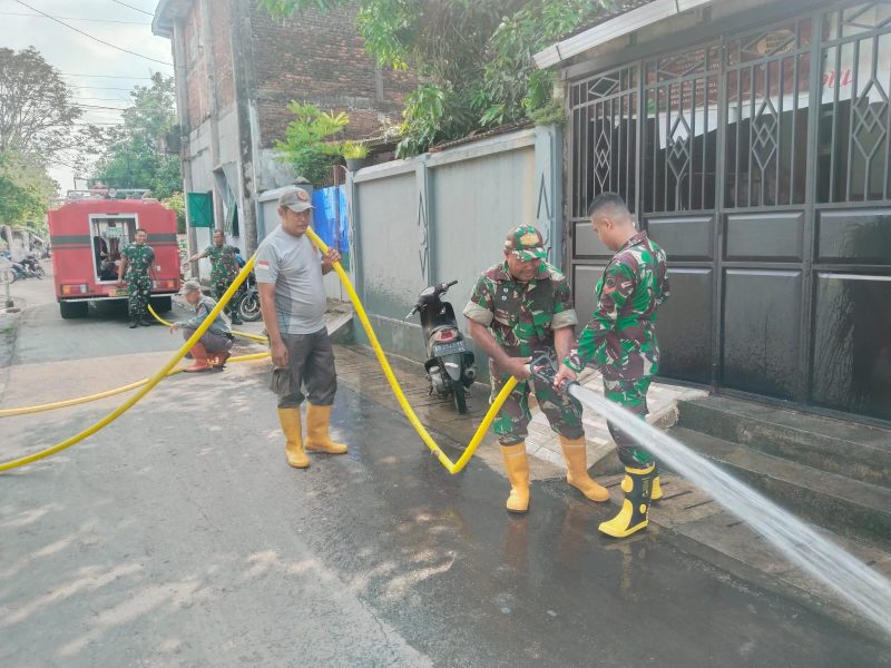 Danramil 03 Serengan Pimpin Langsung Kerja Bakti Pasca Banjir di Kelurahan Joyotakan