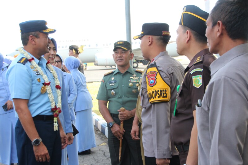 Selain keduanya, tampak pula ikut menyambut orang nomor satu di tubuh TNI AU itu yakni Forkopimda Magetan dan para pejabat utama di lingkungan Lanud Iswahjudi.
