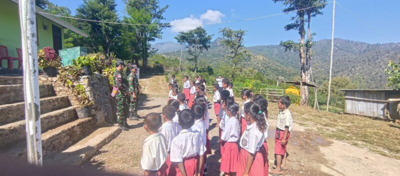Mutis, – Pada Kamis (19/6/2025) di kaki Gunung Mutis yang senyap dan jauh dari gemerlap kota, sekelompok anak berseragam merah putih duduk berderet di ruang kelas sederhana. Mereka mendengarkan dengan antusias ketika seorang tamu berseragam loreng bercerita tentang Indonesia, tentang merah putih, dan tentang semangat pantang menyerah.