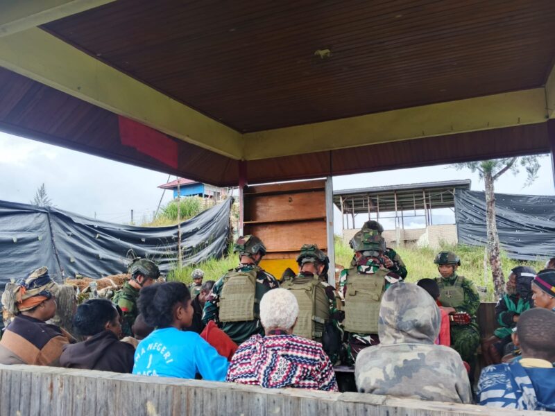 Puncak, – Kabut tipis menggantung di langit Pegunungan Eronggobak, Distrik Omukia, Kabupaten Puncak, Papua Tengah, angin berembus pelan membawa dingin yang menggigit. Tapi di dalam sebuah bangunan sederhana beratap kayu, kehangatan justru terasa membuncah. Puluhan warga Kampung Eronggobak duduk bersila, bersisian dengan para prajurit TNI dari Satgas Yonif 700/Wira Yudha Cakti. Hari ini, Minggu (22/6/2025), bukan sekadar waktu istirahat, melainkan sebuah perjumpaan penuh makna dalam kegiatan yang mereka sebut “Minggu Kasih.”