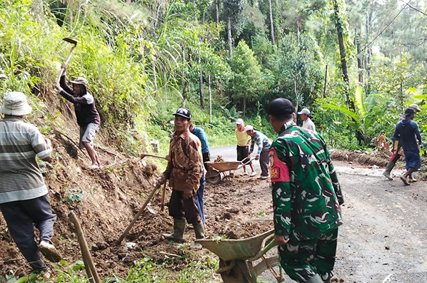 “Karya bakti ini kami lakukan bersama warga dengan sasaran pembersihan saluran air dan sisa tanah longsoran. Lokasinya berada di wilayah pegunungan, sehingga saluran air harus benar-benar bersih agar tidak menimbulkan dampak yang lebih besar,” tegas Serma Siswanto.