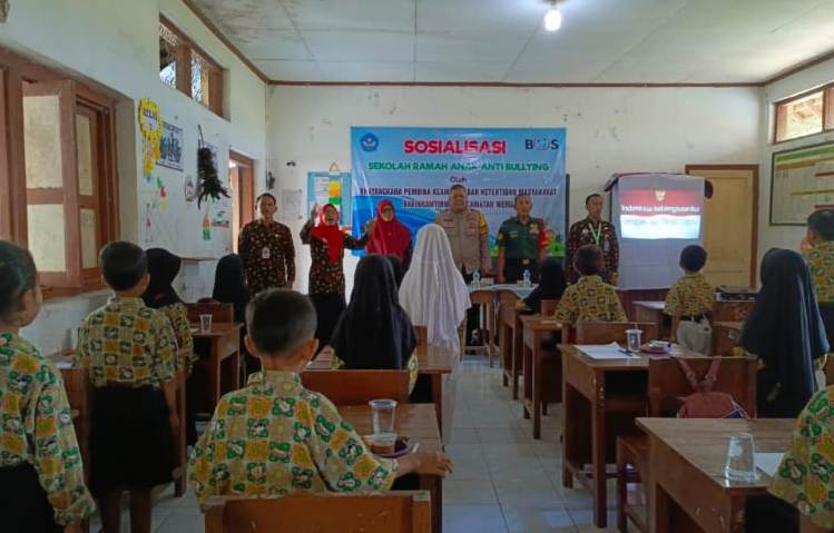SUKOHARJO – Sebagai bentuk dukungan terhadap gerakan anti perundungan, Serma Rubimin Babinsa Desa Grogol, Koramil 05/Weru, Kodim 0726/Sukoharjo bersama dengan Aiptu Sunardi, SH selaku Kanit Binmas Polsek Weru melaksanakan sosialisasi anti-bullying dan bahaya narkoba kepada siswa-siswi SDN 01 Grogol di Aula SDN Grogol 01, Kecamatan Weru, Kabupaten Sukoharjo, Minggu (19/11/2023).