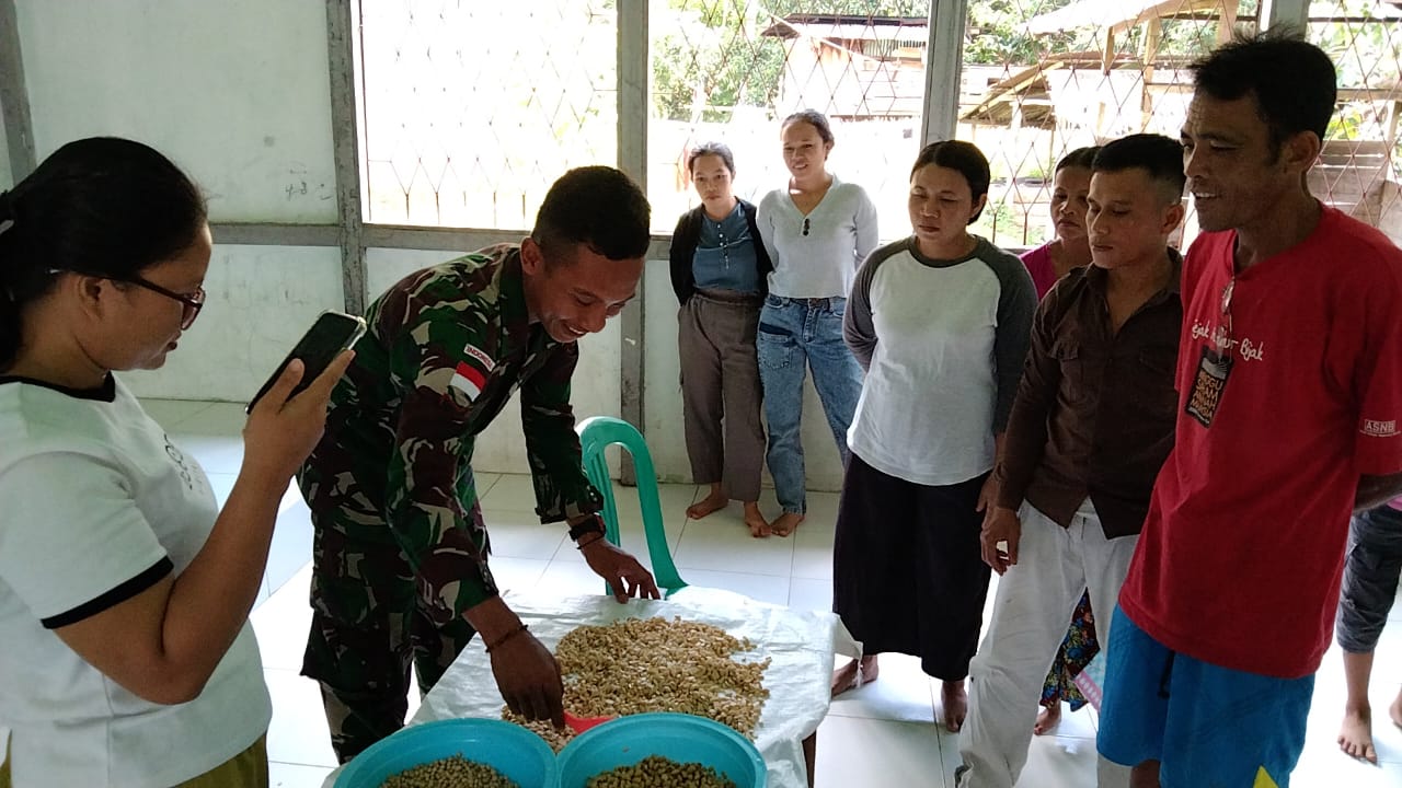 Disampaikan bahwa prajurit Pos Palapasang yang dipimpin oleh Serka Putra Jati memberikan ilmu pembuatan tempe kepada masyarakat sebagai bentuk kepedulian Satgas tergadap masyarakat perbatasan khususnya di Dusun Palapasang.