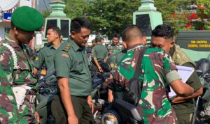 Komandan Kodim 0710 Pekalongan Letkol Infanteri Rizky Aditya, saat penyerahan motor baru kepada para Babinsa di lapangan apel, pada Rabu (1/3/2023). (foto: istimewa)