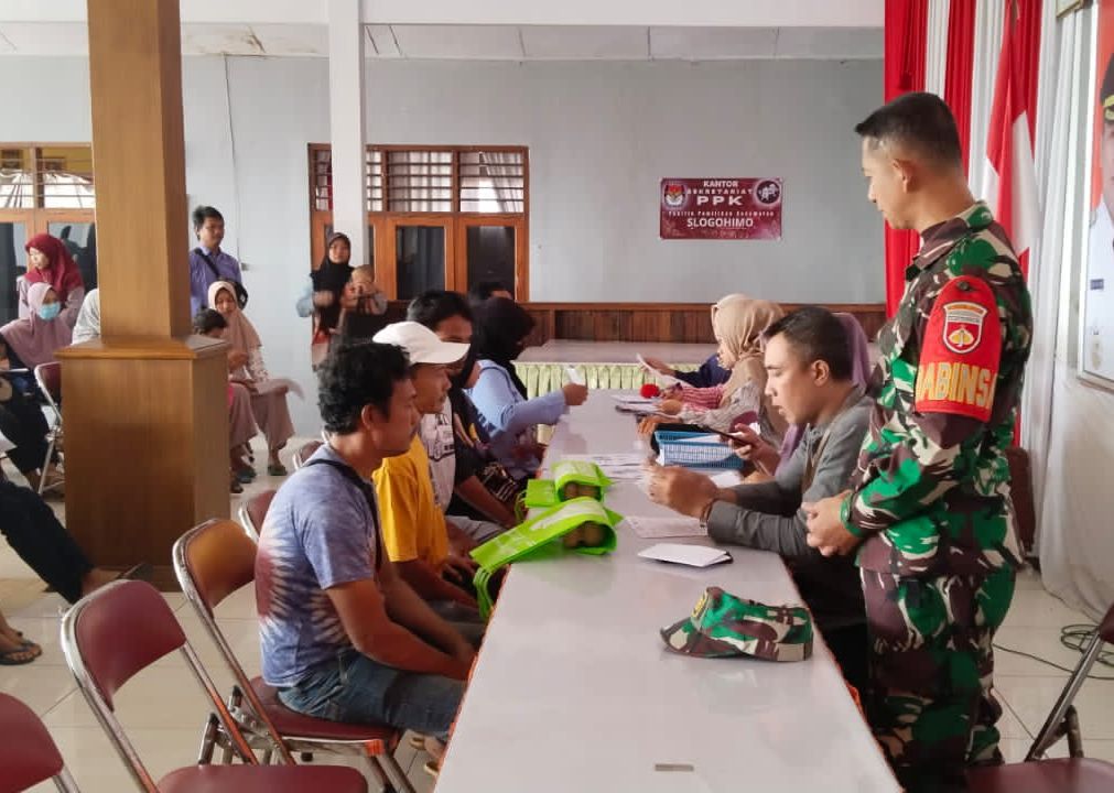 WONOGIRI – Babinsa Koramil 22/Slogohimo Kodim 0728/Wonogiri Serda Awaludin mendapampingi Eni Rahayu selaku koordinator PKH melaksanakan pemberian bantuan makanan sehat kepada keluarga berisiko stunting bertempat di Pendopo Kecamatan Slogohimo yang dihadiri 354 warga, pada Sabtu (28/10/2023).