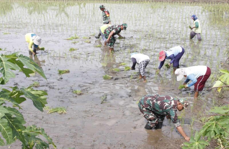 Blitar, – Dalam rangka mendukung program swasembada pangan nasional, Kodim 0808/Blitar bersama Kelompok Tani (Poktan) Tunas Tani melaksanakan kegiatan penanaman padi di lahan sawah milik Bapak Puraji, anggota Poktan Tunas Tani, yang berlokasi di Desa Candirejo Kecamatan Ponggok Kabupaten Blitar, Selasa (4/2/2025).