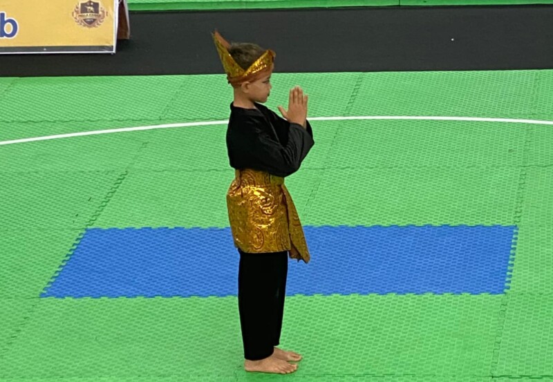 Medali emas itu diraih oleh Muhammad Azka Sya’bani setelah tampil apik di kategori seni tunggal tangan kosong usia dini 1.