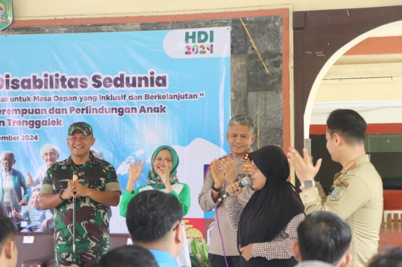 Trenggalek, – Dalam semangat inklusivitas dan keberlanjutan, Forkopimda Kabupaten Trenggalek memperingati Hari Disabilitas Internasional (HDI) Tahun 2024 di Aula Pendhapa Sasana Among Praja, Desa Ngadirenggo, Kecamatan Pogalan, Jumat (20/12/2024). Mengusung tema “Memperkuat Kepemimpinan Penyandang Disabilitas untuk Masa Depan yang Inklusif dan Berkelanjutan,” acara ini dihadiri oleh berbagai pihak, termasuk Dandim 0806/Trenggalek Letkol Czi Yudo Aji Susanto, S.Sos., M.A., serta jajaran Forkopimda lainnya.