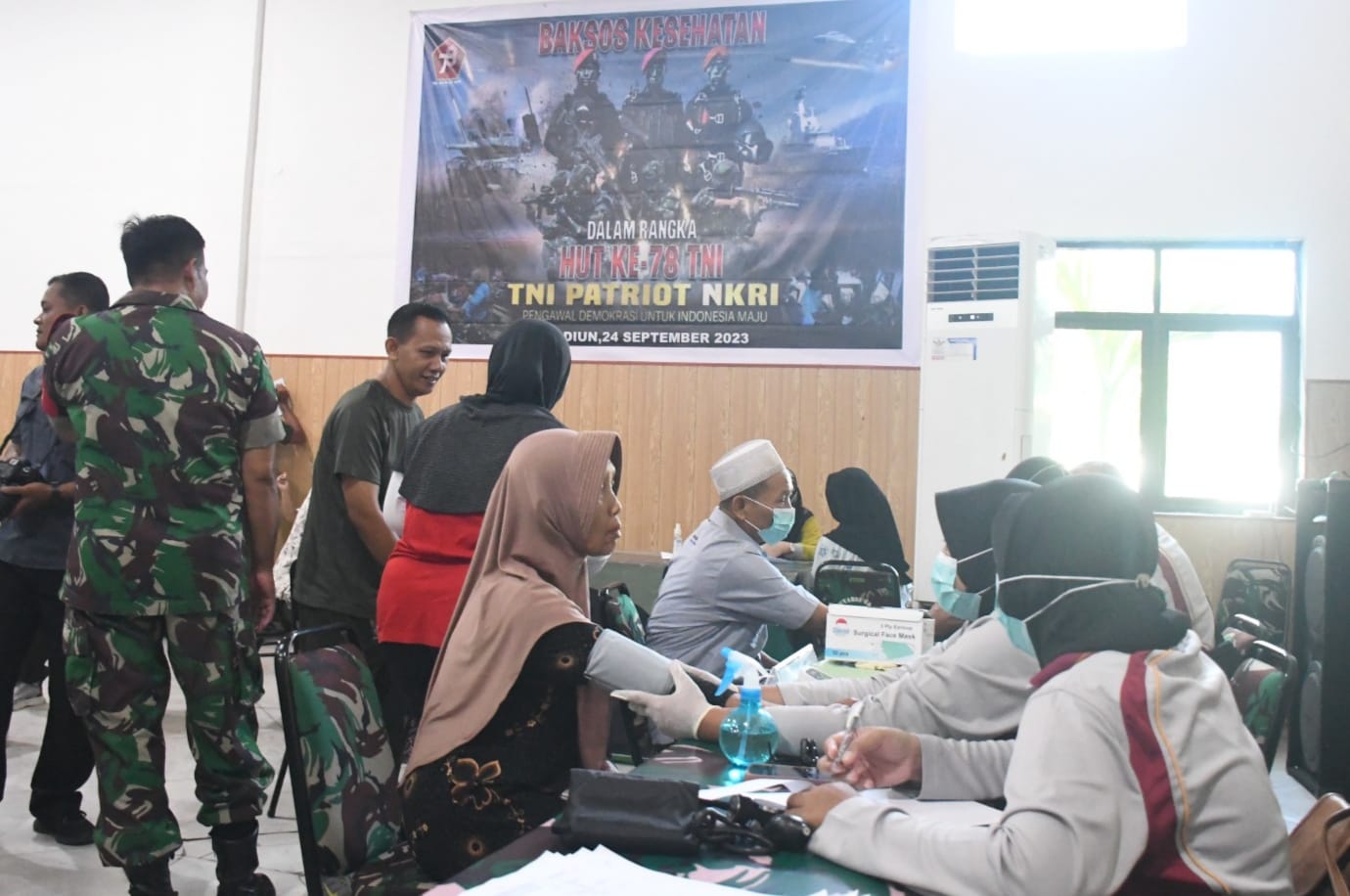 MADIUN – Dalam rangka memperingati HUT ke-78 TNI, Bakti Sosial Kesehatan diselenggarakan serentak di berbagai satuan jajaran TNI di seluruh Indonesia. Salah satunya di Kota Madiun yang diselenggarakan oleh Korem 081/DSJ dan Kodim 0803/Madiun.