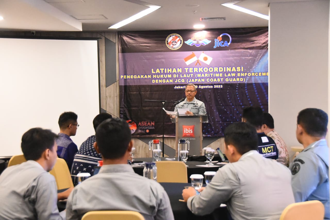 JAKARTA – Indonesia melalui Bakamla RI bersama Jepang melalui Japan Coast Guard (JCG) dan Japan International Cooperation Agency (JICA) resmi membuka latihan terkoordinasi Maritime Law Enforcement atau Penegakan Hukum di Laut di salah satu hotel di Jakarta Pusat, Selasa (8/8/2023).