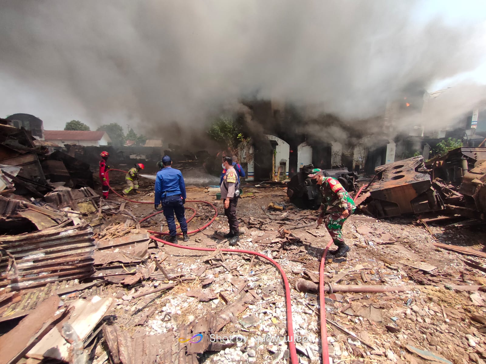 “Alhamdulillah ada 5 unit mobil pemadam kebakaran pada pukul 11.10 WIB dari dinas damkar juga Babinsa dan Bhabinkamtibmas dengan sigap hadir membantu memadamkan dan mengamankan sehingga pada pukul 12.05 Api dapat dikendalikan dan padam,” jelasnya.