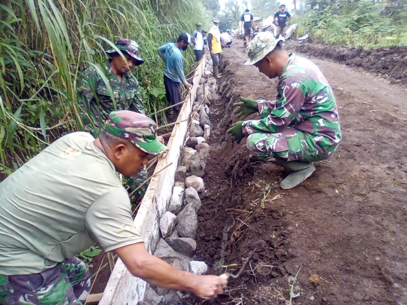 Boyolali, Jawa Tengah – Semangat gotong royong kembali terasa kuat di Dukuh Sidorejo, Desa Mliwis, Kecamatan Cepogo, Kabupaten Boyolali. Warga bersama prajurit TNI bekerja bahu-membahu membangun talud yang akan memperkuat infrastruktur jalan desa, Minggu (22/2/2026).