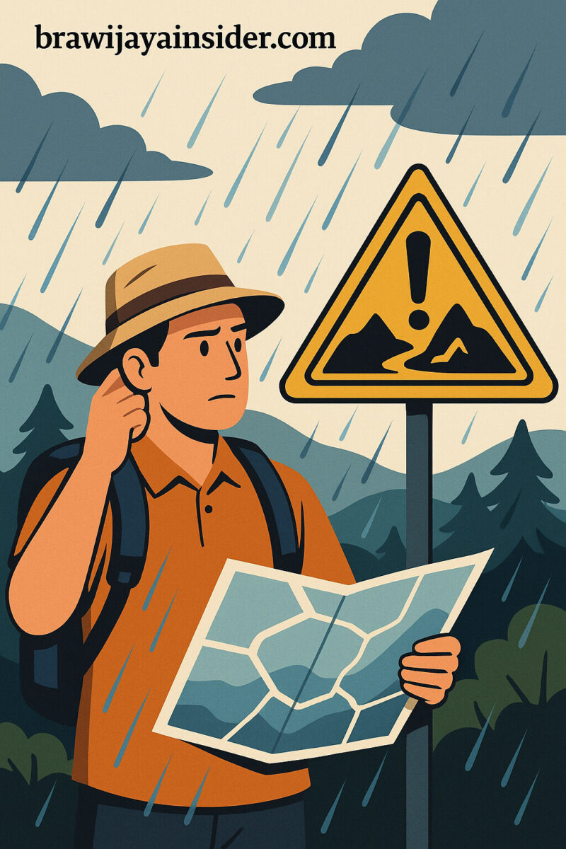 Novianto juga memberi panduan bagi wisatawan yang telanjur berada di lokasi saat cuaca berubah drastis. Hal pertama dan paling penting adalah memahami protokol keselamatan. “Pahami titik evakuasi. Hentikan aktivitas jika tidak memungkinkan. Misalnya di gunung terjadi badai, protokol utamanya ya menghentikan pendakian,” tegasnya.