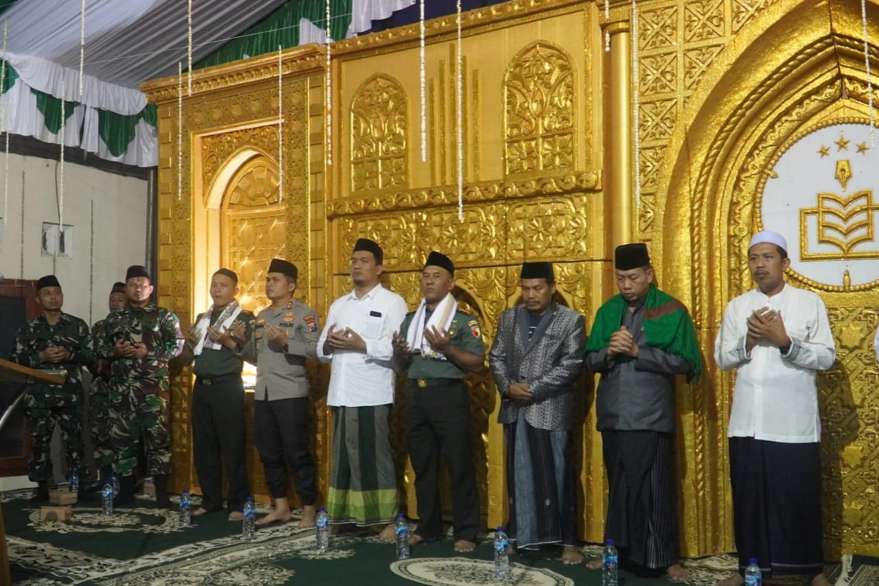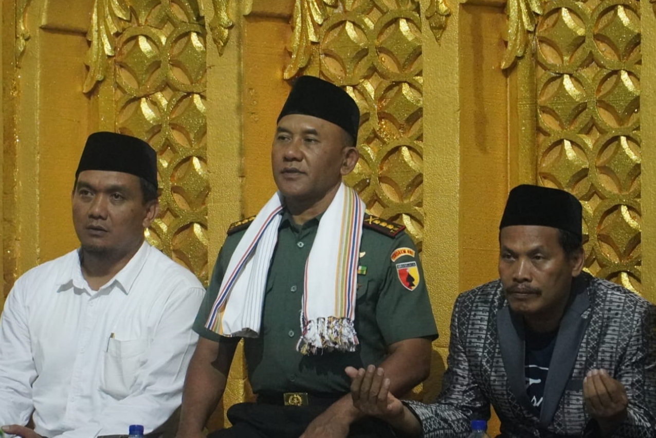 NGANJUK – Danrem 081/DSJ Kolonel Inf H. Sugiyono menghadiri pengajian umum dan sholawatan dalam rangka memperingati Maulid Nabi Muhammad SAW di Ponpes Hamalatul Quran Al Ijabah, Desa Blitaran, Kecamatan Sukomoro, Kabupaten Nganjuk, pada Sabtu (7/10/2023) malam.
