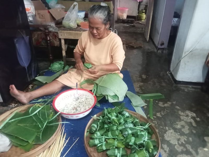 “Awalnya diajak bulik jualan ketupat saat lebaran ketupat. Lho kok untungnya lumayan. Lalu saya ajak teman teman (tetangga) yang mau berjualan. Jadilah kami jualan sejak tahun 2024 sampai sekarang,” kata Madiah sambil mengenalkan tiga ibu tetangganya itu. Mereka berjualan sejak tgl 4 Syawal atau 24 Maret 2026 lalu.