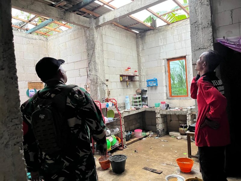 “Akibat angin kencang dan hujan deras, hampir separuh atap rumah terbang. Beruntung tidak ada korban jiwa dalam kejadian ini,” ujar Agung di lokasi.