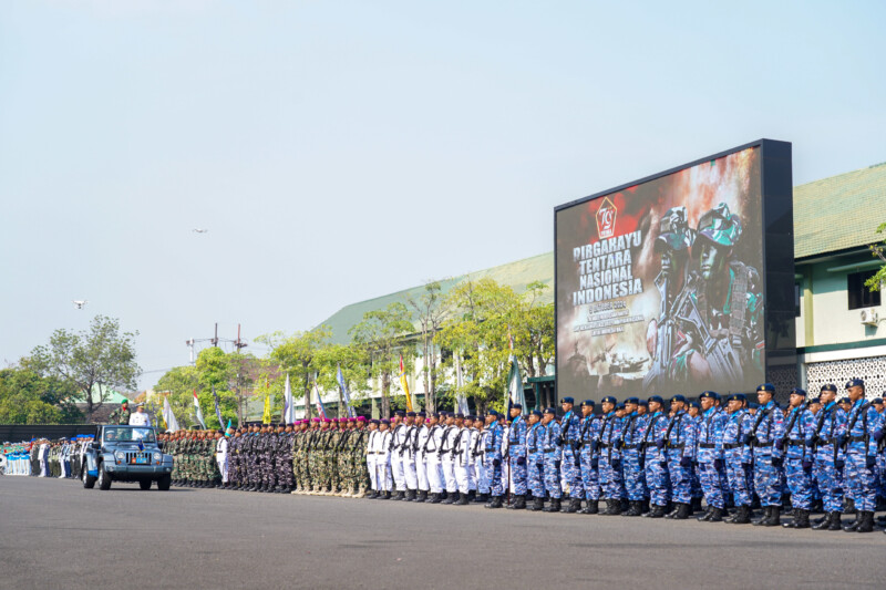 Surabaya, – Upacara HUT ke-79 TNI dilaksanakan di Lapangan A. Yani Makodam V/Brawijaya. Pangkoarmada II Laksamana Muda Ariantyo Condrowibowo, M.Tr.Opsla, bertindak sebagai inspektur upacara, pada Sabtu (5/10/2024).