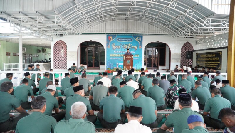 Madiun, – Mengambil tema “Membangun Mentalitas Tangguh Menghadapi Percepatan Zaman”, Korem 081/DSJ menggelar peringatan Isra’ Mi’raj Nabi Muhammad SAW di Masjid Jenderal Sudirman Makorem, Jl. Pahlawan No. 50 Kota Madiun, Rabu (5/2/2025).