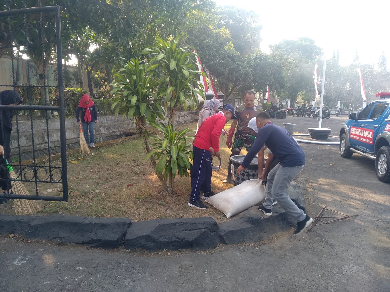 Letda Inf Suparman mengatakan bahwa “dalam rangka menyambut HUT RI ke-78, pagi ini kita bersama-sama membersihkan sampah dan rumput liar didalam maupun diluar makam.”