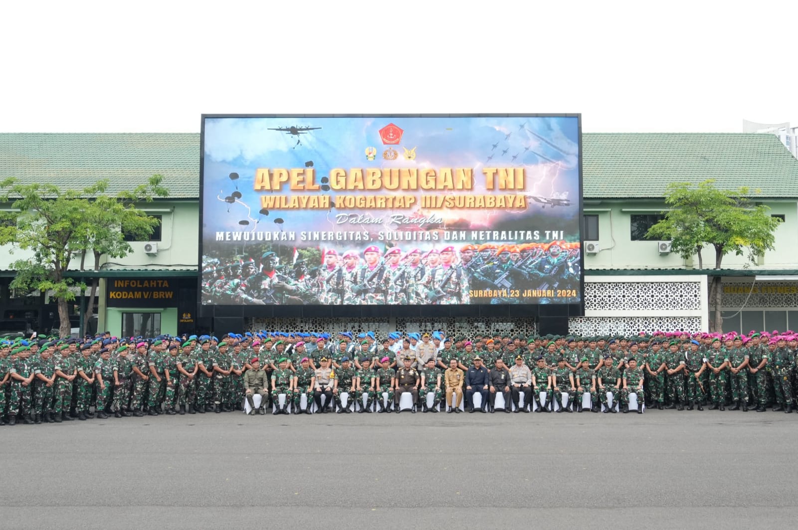 “Oleh karena itu saya perintahkan kepada seluruh satuan di wilayah Kogartap III/Surabaya agar selalu memantau dan mengantisipasi setiap perkembangan situasi dan kondisi di wilayahnya masing-masing, serta menjaga netralitas selama pelaksanaan Pemilu. Tunjukkan bahwa kita bisa dan mampu menjaga netralisltas TNI-Polri dalam Pemilu 2024,” sambungnya.