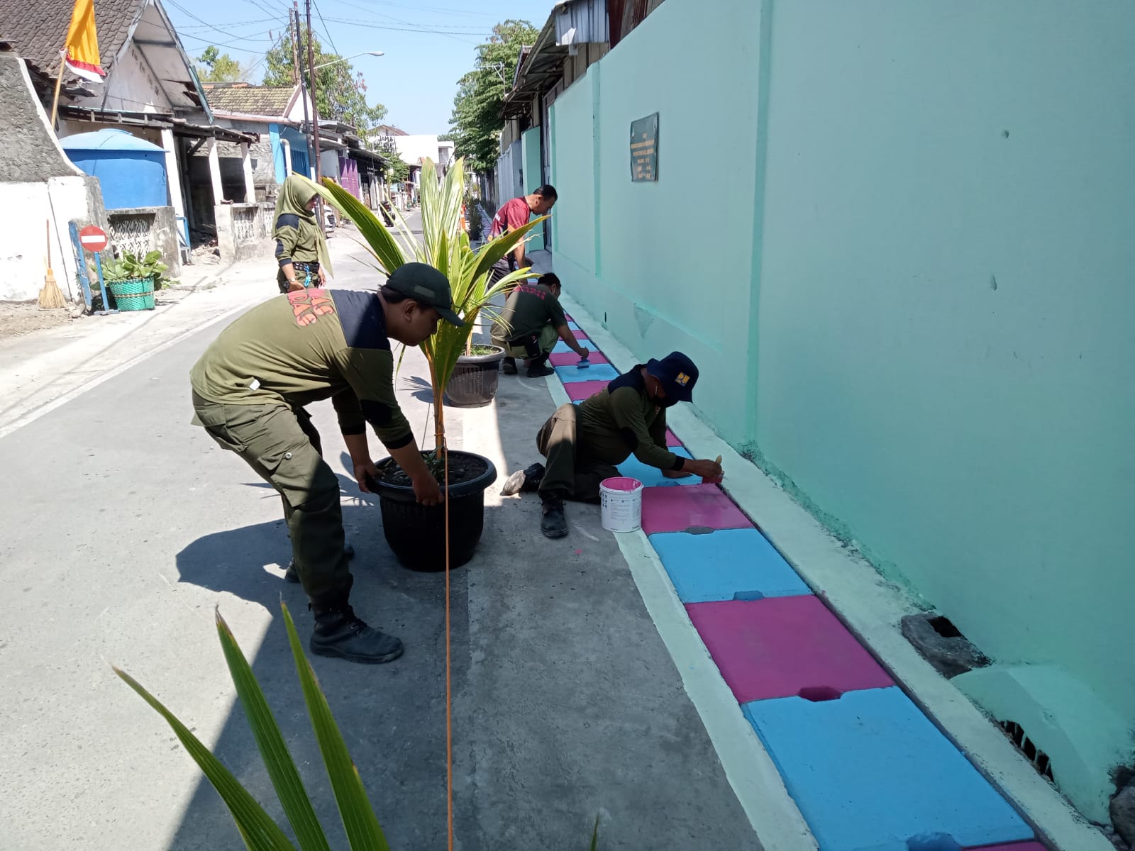 SURAKARTA – Menjelang berakhirnya Karya Bakti Daerah (KBD) Tahap VIII TA 2023 Personil Koramil 03/Serengan Kodim 0735/Ska bersama Warga menyelesaikan pengerjaan finishing pengecetan sasaran KBD Tahap VIII TA. 2023 Kodim 0735/Surakarta di RW. 14 Jln. Babar Layar Kelurahan Danukusuman Kecamatan Serengan Kota Surakarta, Sabtu (9/9/2023).