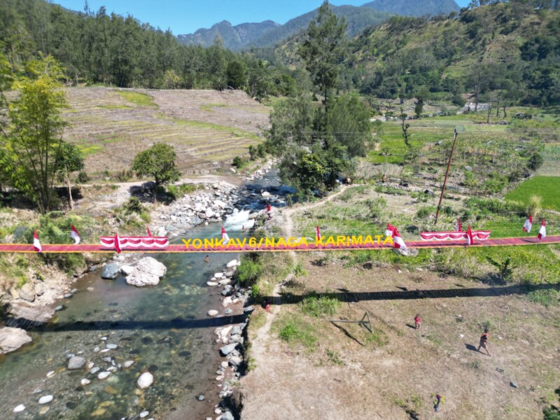 “Terimakasih kepada seluruh pihak yang sudah membantu seperti Pertamina, Artha Graha Peduli, Bankom Naga Karimata dan VRI Bandung yang sudah mendukung dari awal sehingga jembatan ini dapat selesai tepat sebelum hari kemerdekaan negara Indonesia,” ujar Letkol Kav Ronald Tampubolon.