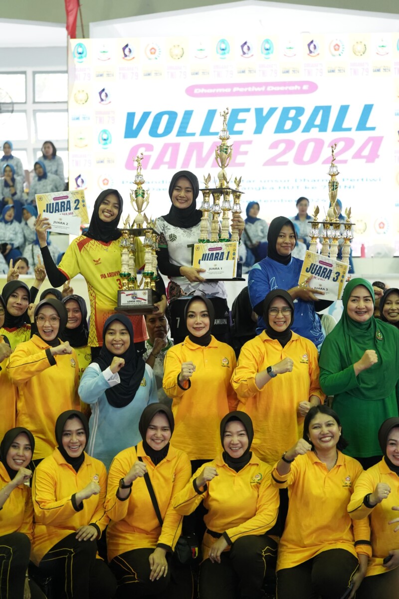 Surabaya, – Dalam kejuaraan bola voli yang diselenggarakan oleh Dharma Pertiwi Daerah E, persit Kartika Chandra Kirana PD V Brawijaya berhasil menjadi juara.
