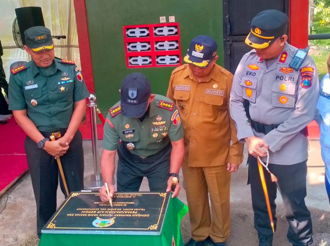 “Kita ketahui bersama, kelangkaan air bersih akan dapat menghambat perkembangan di suatu wilayah dan semakin memperburuk taraf hidup masyarakatnya,” kata Danrem dalam sambutannya pada acara peresmian penggunaan fasilitas air bersih program TNI manunggal air dan pencanangan percepatan penurunan stunting di Telaga Buret, desa Sawo, kecamatan Campurdarat, kabupaten Tulungagung, Selasa (25/7/2023).